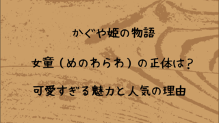 高畑勲監督の遺作となった「かぐや姫の物語」の中でマスコット的なかわいさを持ち個性的で強烈な存在感を放つ主役より目立っている女童めのわらわ。あのアゴと違ってかわいいと人気ですよね。今回は女童めのわらわの正体やあの独特の表情になった経緯。女童め...
